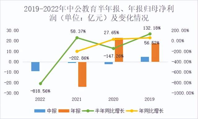 出乎所有人意料,虽然市场一片火热,中公教育却有些“冷”。从2019-2022年营收、净利润上来看,其表现与火热的外部环境恰恰相反——营业收入持续下滑,尤其是近两年:2021年同比下滑38.30%,而今年中期的下滑更是高达54.15%,营收直接腰斩。