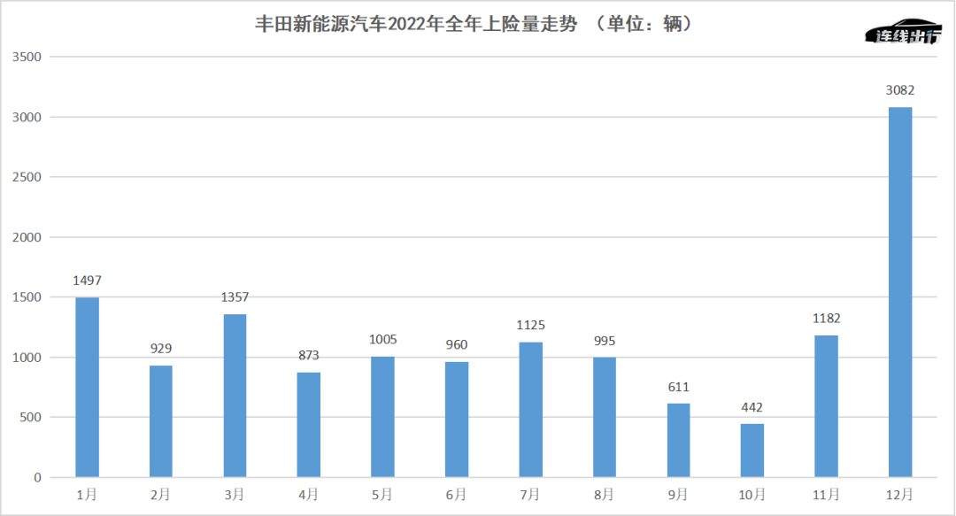 丰田新能源汽车2022年全年上险量走势,数据来源于乘联会,连线出行制图