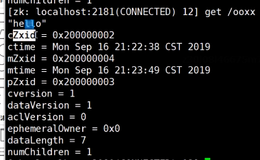 mZxid: 修改事务id -- (set /ooxx "hello")