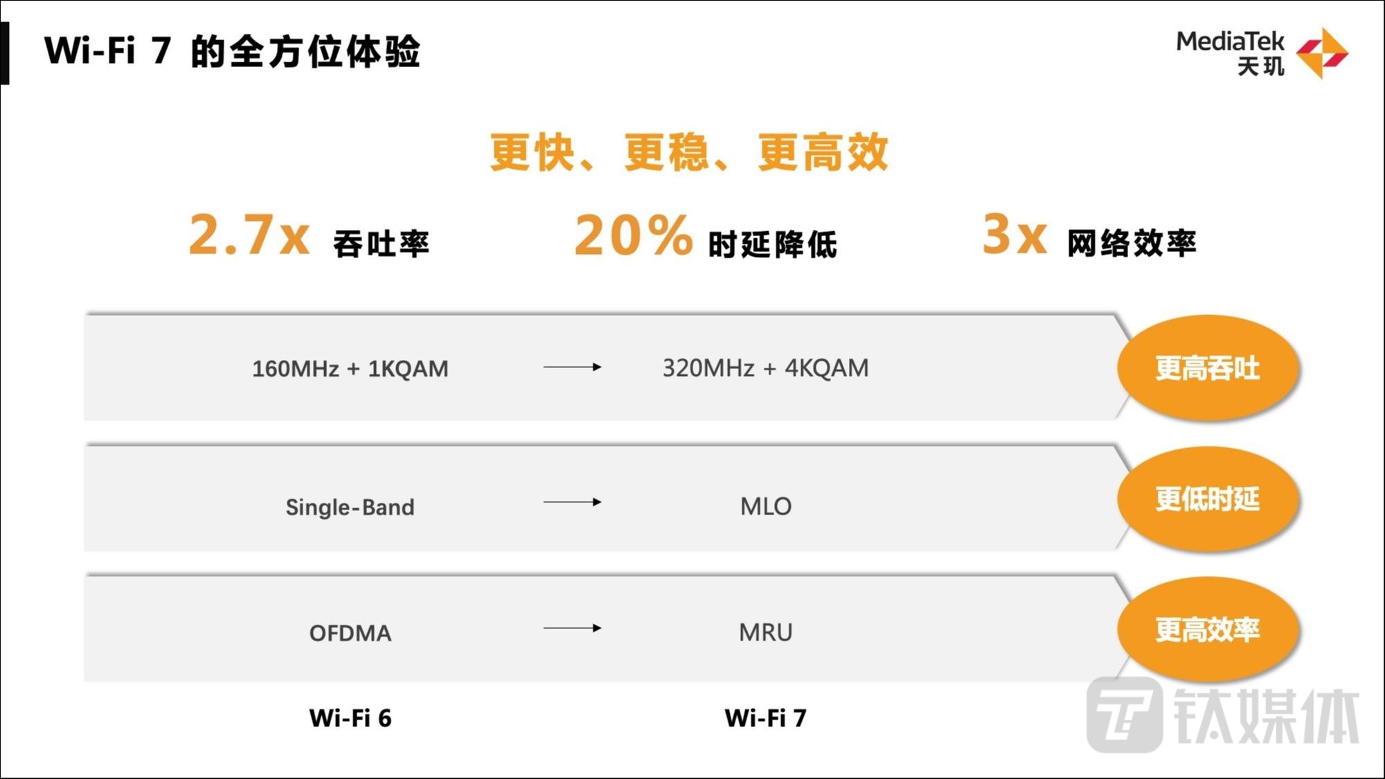 同时借助新增的MRU (Multiple Resource Unit) 技术可提升网络使用效率,大幅降低噪音干扰对频段的影响,在多用户负载的网络下提升吞吐率。在通信、游戏、拍照、显示等高频交互场景之外,联发科也同时加速了对于高保真蓝牙音频以及MPE融合技术的开发。