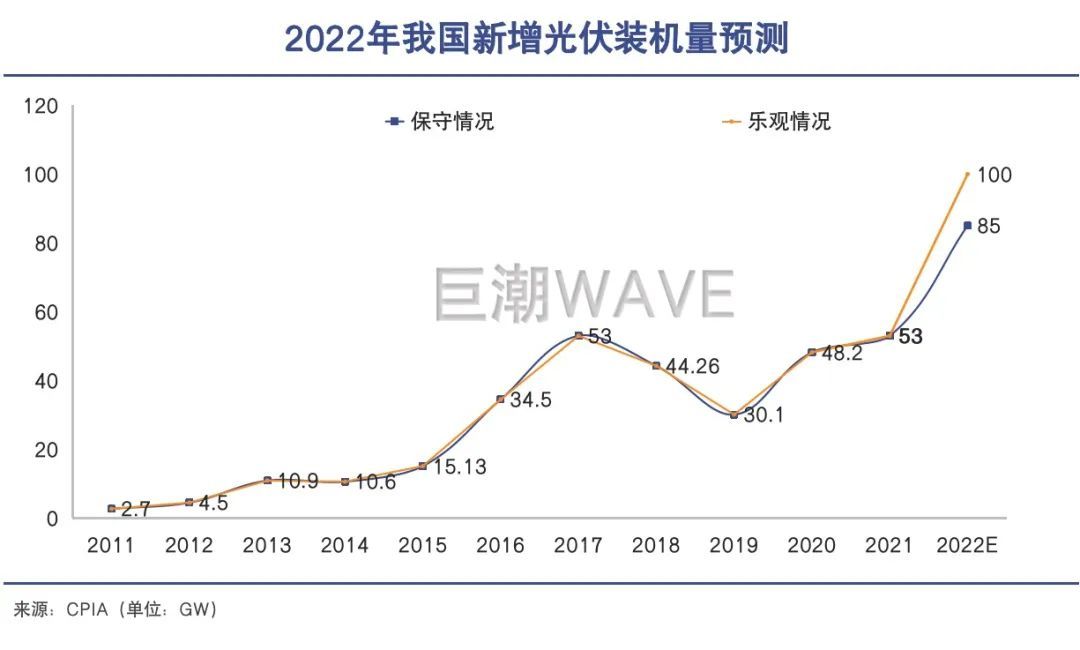 根据我国碳中和的目标,我国距2030年12亿千瓦的累计太阳能、风电装机最低要求,仍有逾近7.5亿千瓦的装机差额,如果以此数据按10年平均计算,即意味着风、光每年的新增装机将不低于75GW。且我国光伏装机量已经连续9年世界第一。