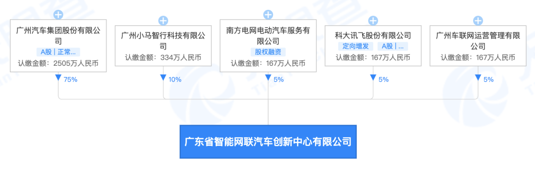 在汽车圈,它以167万人民币共同设立的广东省智能网联汽车创新中心有限公司,与广汽集团、小马智行、广州车联网管理公司、南方电网电动汽车服务公司作为共同股东,几乎拉来了小半个广州汽车圈。