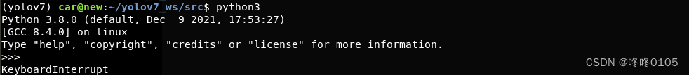 5、输入 python3 指令测试一下,可以看到指向已更新到 python3.8。