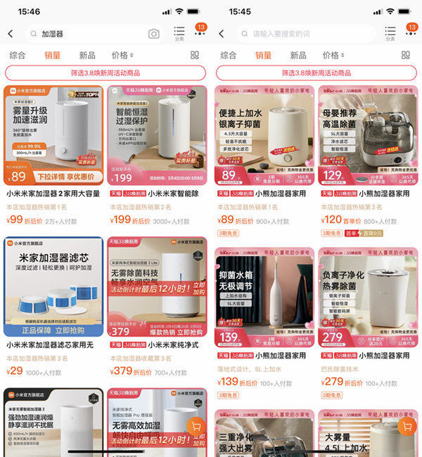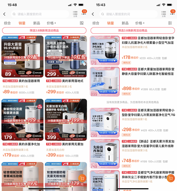 左:美的天猫官方店 右:亚都天猫官方店
