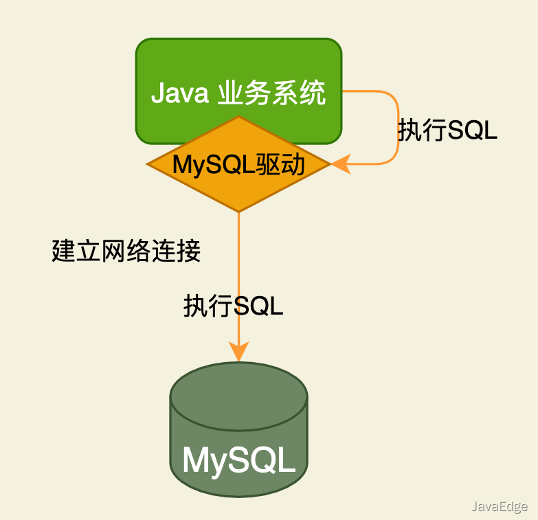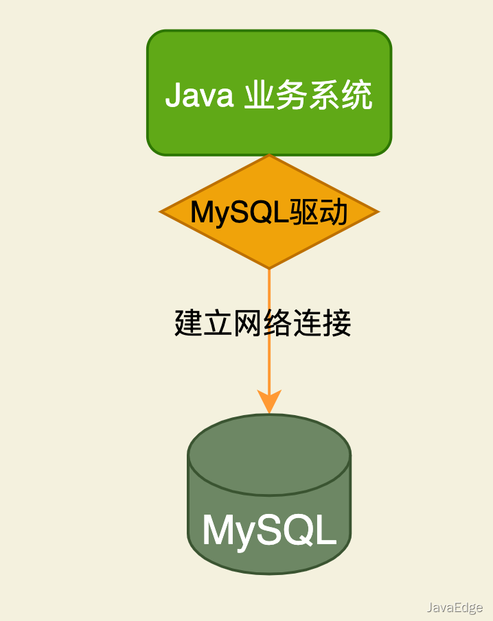 访问MySQL,就得和MySQL建立网络连接,而这就由MySQL驱动负责,他会在底层和MySQL建立网络连接,有此连接,才能发送请求给MySQL服务器: