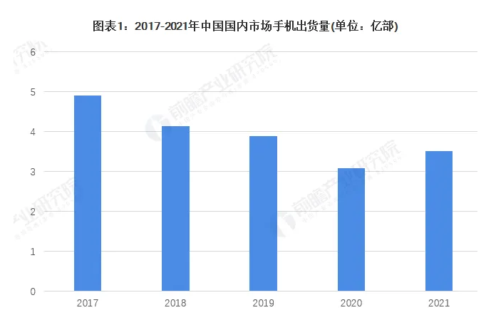 根据IDC的数据,2017-2021年,中国智能手机出货量分别为4.44亿台、3.97亿台、3.7亿台、3.26亿台、3.29亿台,5年的时间里仅2021年出货量略增1%。