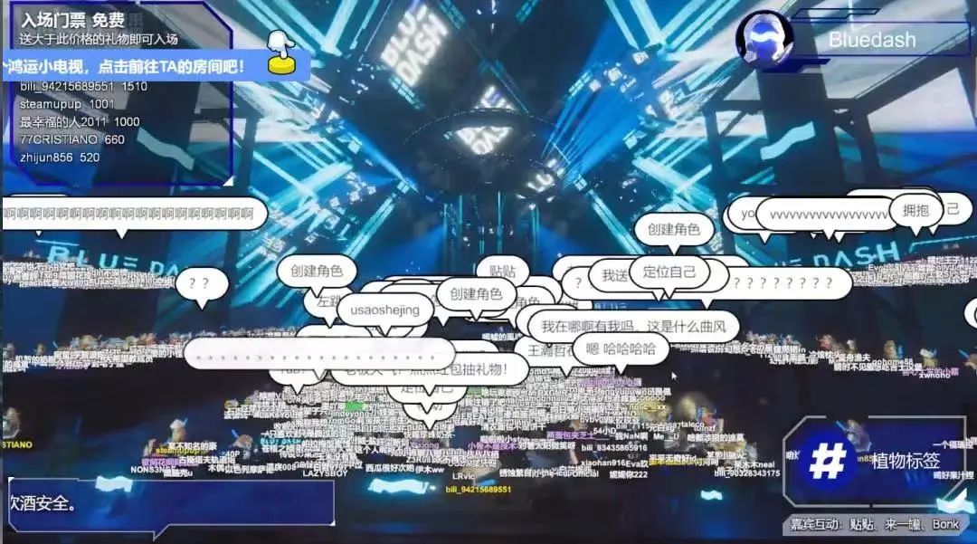 2021年末,一个名叫修勾夜店的弹幕互动直播间在B站引发关注。满屏舞动的狗子们引起了人们对「元宇宙蹦迪」的向往,使用弹幕就可以加入的轻量级玩法,以及异次元的新鲜感,让人们轻松获得了低配版元宇宙的门票。