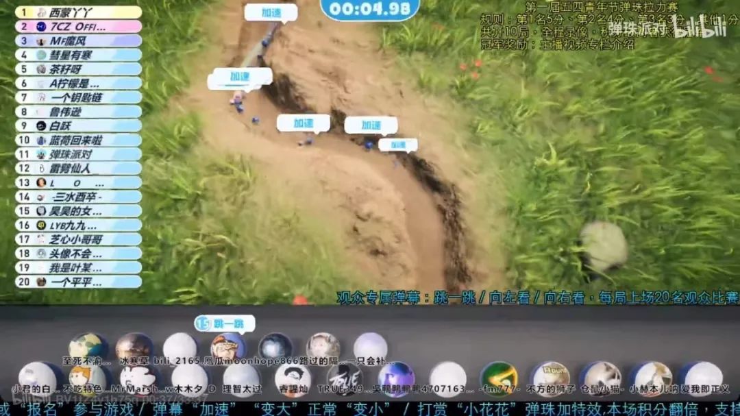 @饼干时间是B站弹珠派对直播间的主播,同时有游戏行业从业经历。在弹幕互动直播出现之前,他就开始思考游戏跟直播的结合。疫情后,注意到大家对「开盲盒」式团体作战的热衷,以及看到B站弹珠解说类等视频的火爆,他开发了弹珠拉力赛的互动版本。