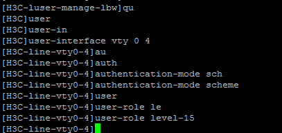 authentication-mode xxx #(line vty模式下)配置登录验证模式,可选值为none(无密码登录)、password(有密码登录)和scheme(本地用户及密码登录)