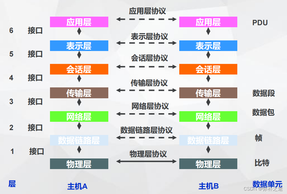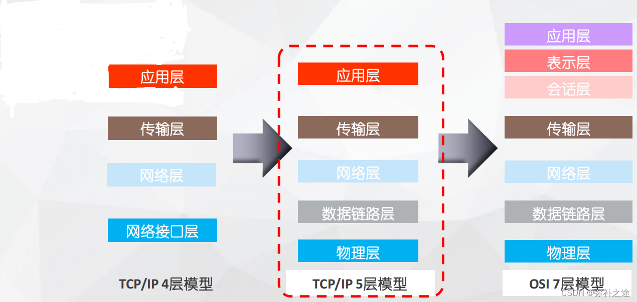 **传输层:**定义传输数据的协议端口,以及流控和差错校验(端到端防火墙)