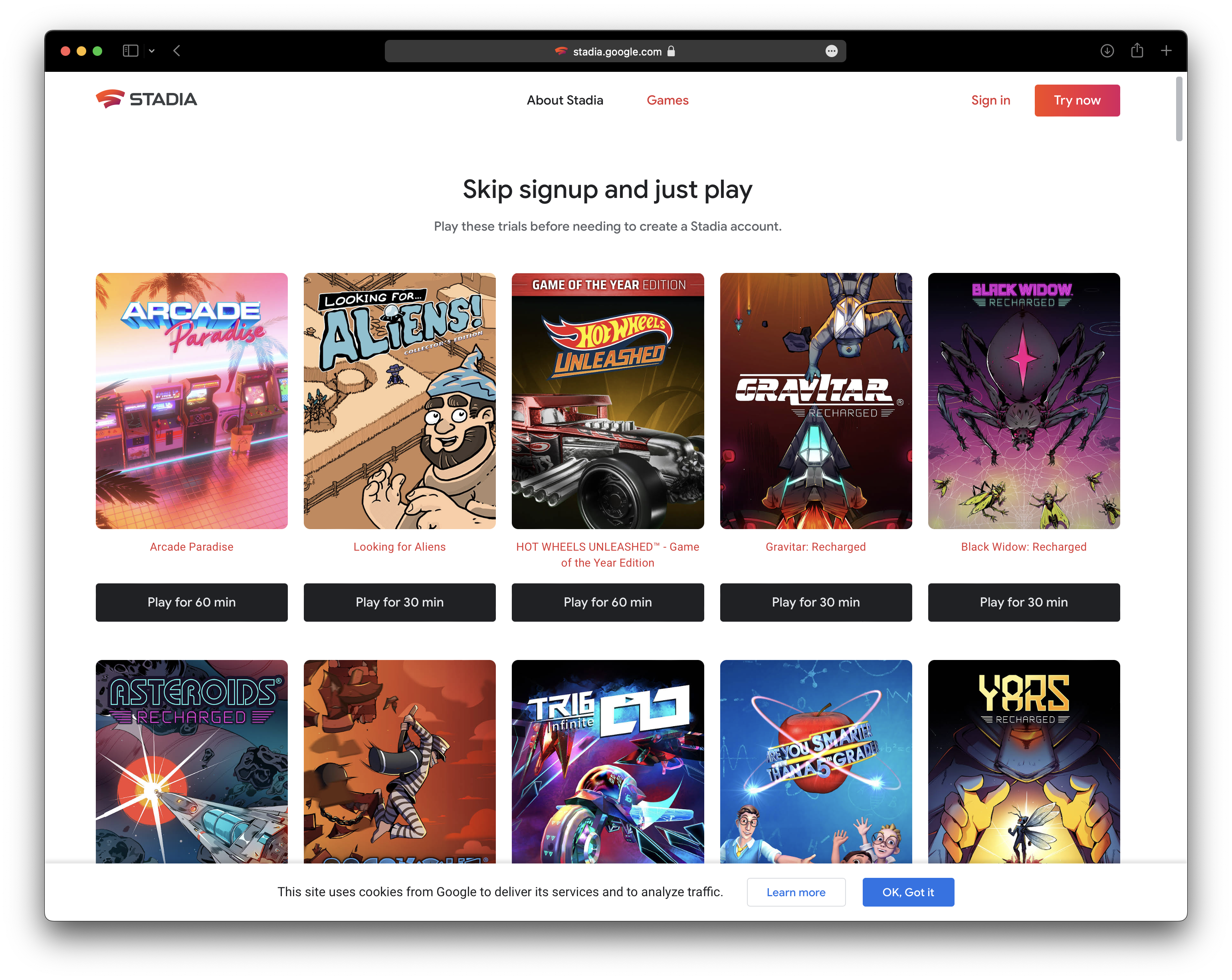 2019年,谷歌推出了一项全新云游戏串流服务——Google Stadia。不同于GeForce Now等云游戏平台,Google Stadia的收费方式特别:就像谷歌的其他服务一样,Google Stadia也是一个“基本免费、高级收费”的云游戏服务。免费用户可以以1080P的分辨率免费串流自己的游戏。没错,在Google Stadia平台,串流的游戏需要自己购买,这可能是Google Stadia和其他串流平台最大的不同。