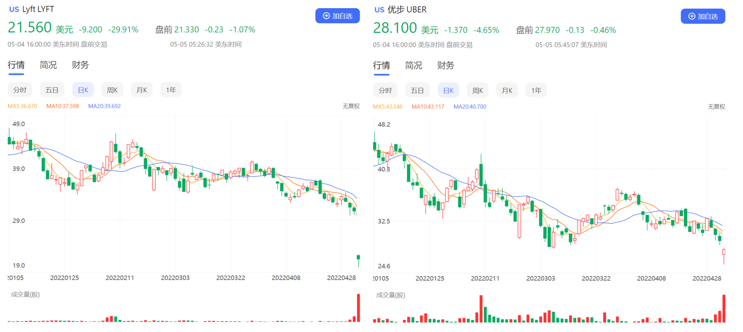 周二美股盘后,Lyft公布一季度财报和二季度业绩展望。虽然营收同比大幅增长且亏损额有所收窄,但活跃用户数、二季度业绩指引均不及市场预期,还是导致股价大幅下挫。截止周三收盘时,Lyft股价定格在21.56美元,单日暴跌29.91%,创2020年10月以来新低。