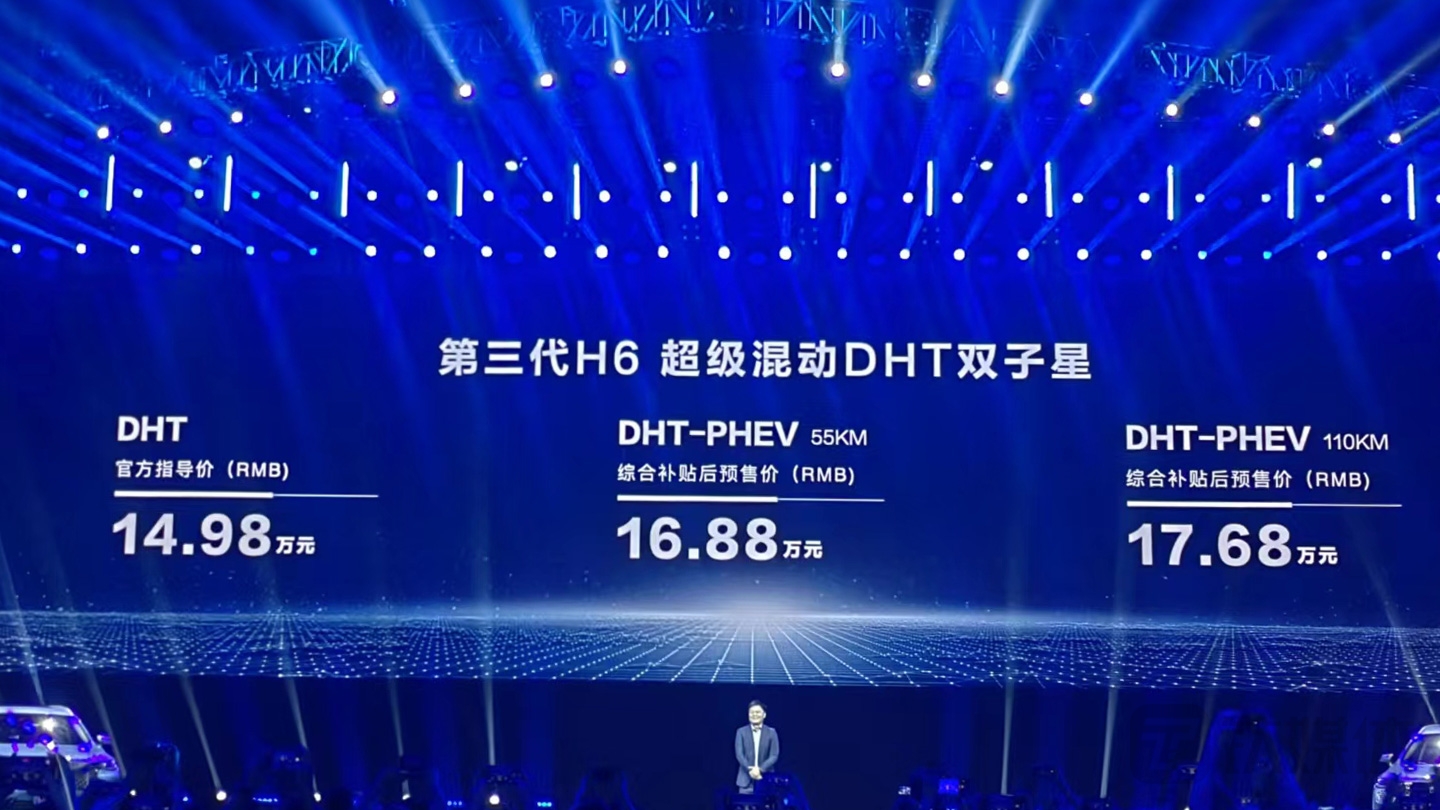 钛媒体消息2022年8月22日,哈弗品牌正式发布了新能源战略以及品牌标识,并同步首发第三代哈弗H6超级混动DHT车型,包括HEV以及PHEV两个版本。其中,第三代哈弗H6 HEV版官方指导价14.98万元,而PHEV版本同步开启预售,55km纯电续航版预售16.88万元,110km纯电续航版本17.68万元。