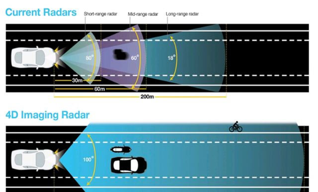 因此,相对于3D毫米波雷达,4D成像毫米波雷达不仅可以获得距离、速度、角度和高度等更多的数据,还可以提供点云图,有效解析目标物体的轮廓和类别。