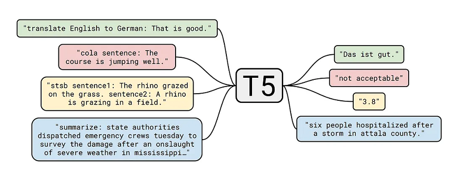 这是一个文本到文本的转换模型,在大型语料库上进行训练以完成多项任务。
