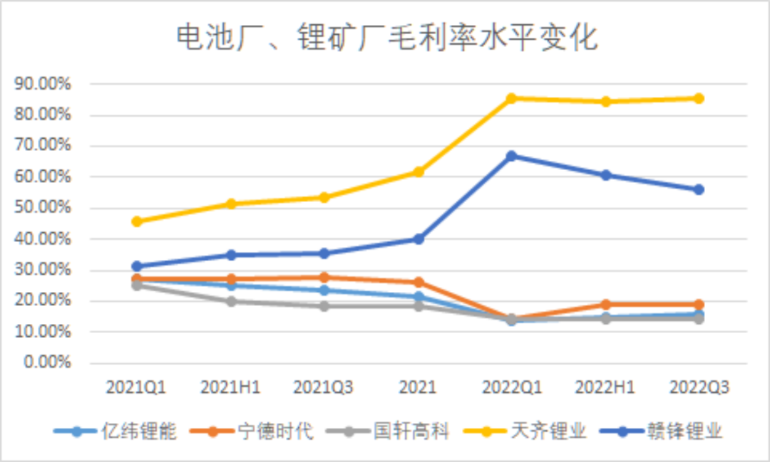 这导致同时间内,电池厂商与上游原材料厂商在盈利能力上出现相反的趋势。虽说如宁德时代、比亚迪等电池厂商采用了收购锂矿、电池回收、提前预判价格采购等动作来控制成本,但仍不能改变其利润最终受制于上游原材料价格的事实。