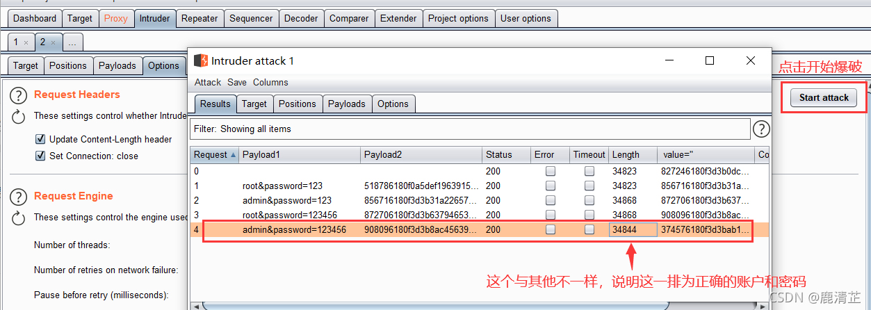 开始破解,先清楚所选项,再添加username和password