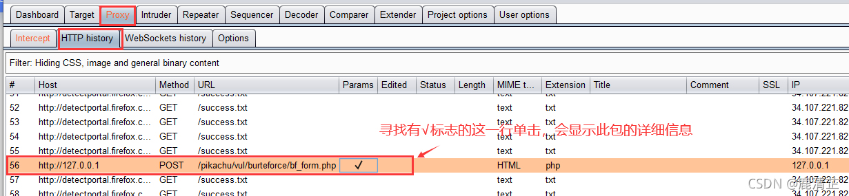 前面寻找包的位置是http历史包中,下面在线处理包