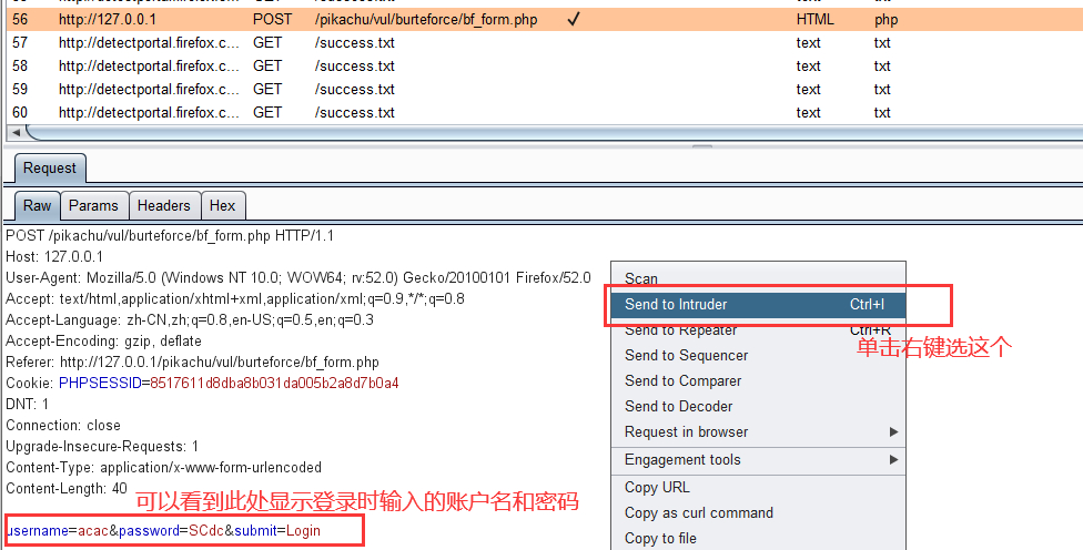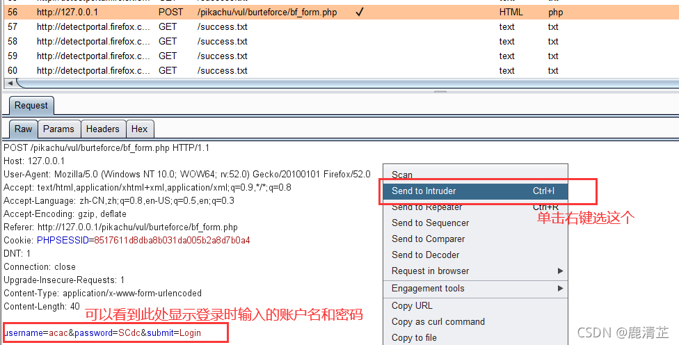 寻找burp suite的抓包,,然后单击右键点击发送到Intruder(Send to Intruder)
