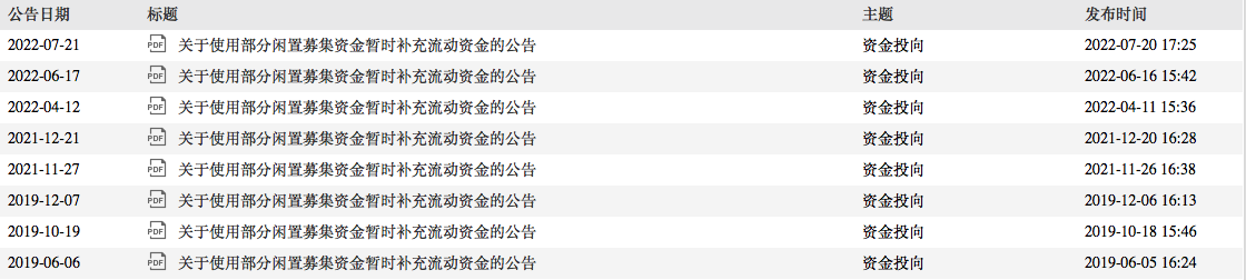 鼎胜新材发布的利用闲置资金短暂补充流动资金的公告,图片来自Wind