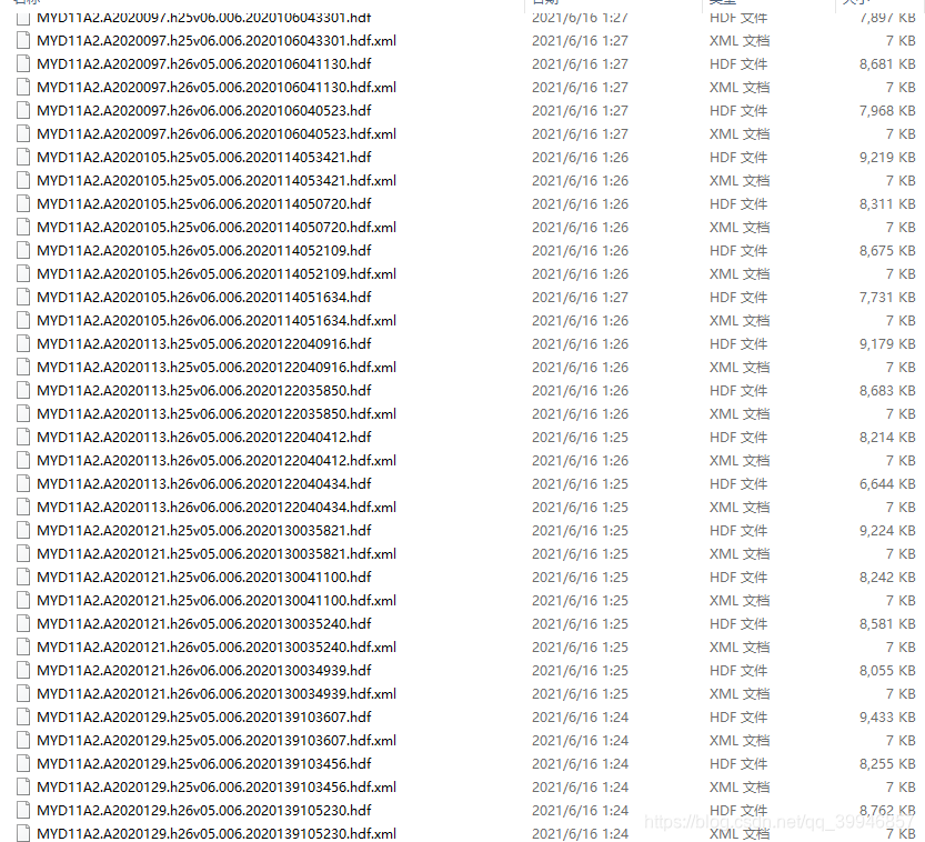 选择下载的tiles tiles=['h25v05','h25v06','h26v05','h26v06'],