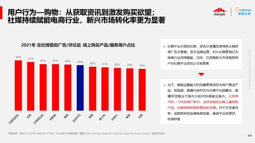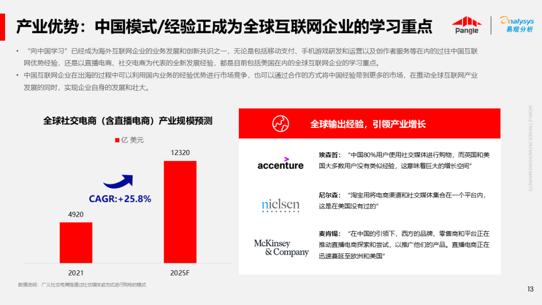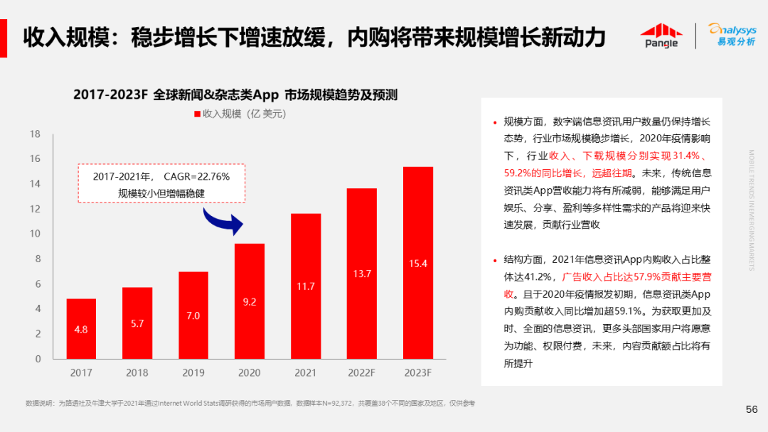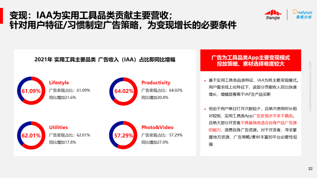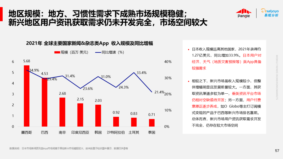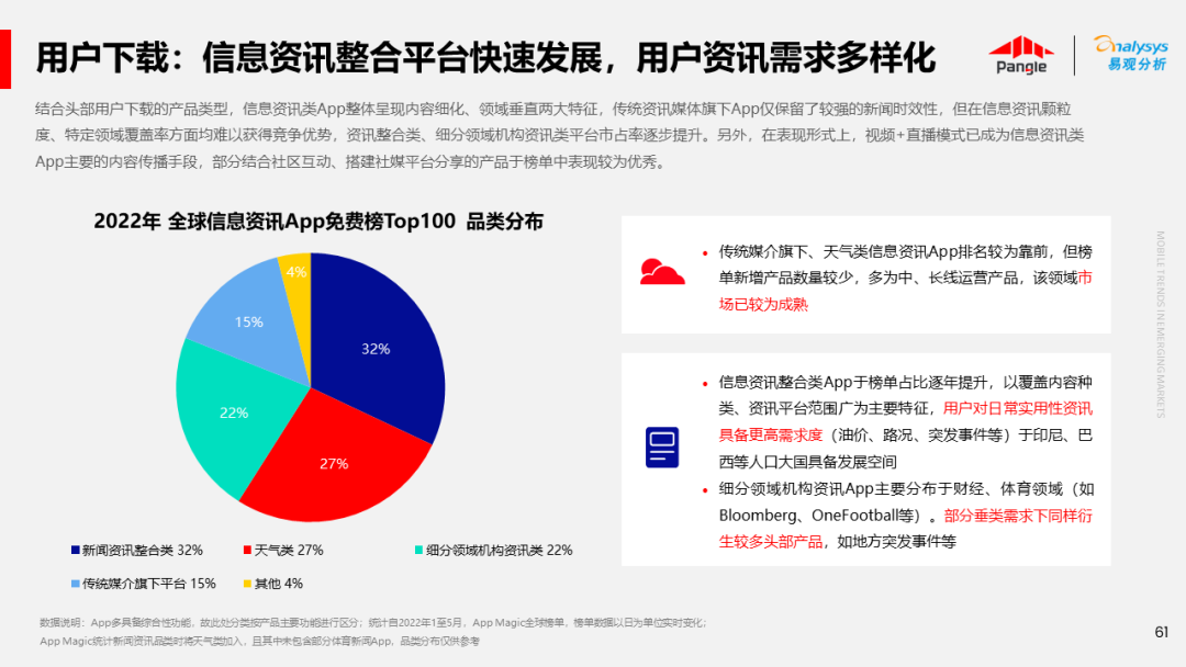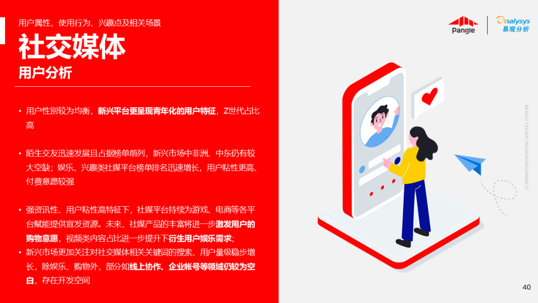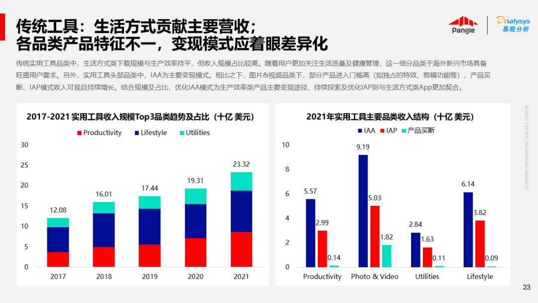 海外新兴市场快速发展,出海已成为中资企业发展的核心策略之一。易观分析联合Pangle共同发布的《全球新兴市场移动应用报告》关注全球非游移动互联网市场。从实用工具、社交通讯、信息资讯、图书阅读四大行业出发,分析发展趋势、用户倾向等内容,为中资企业、本土开发者提供参考。