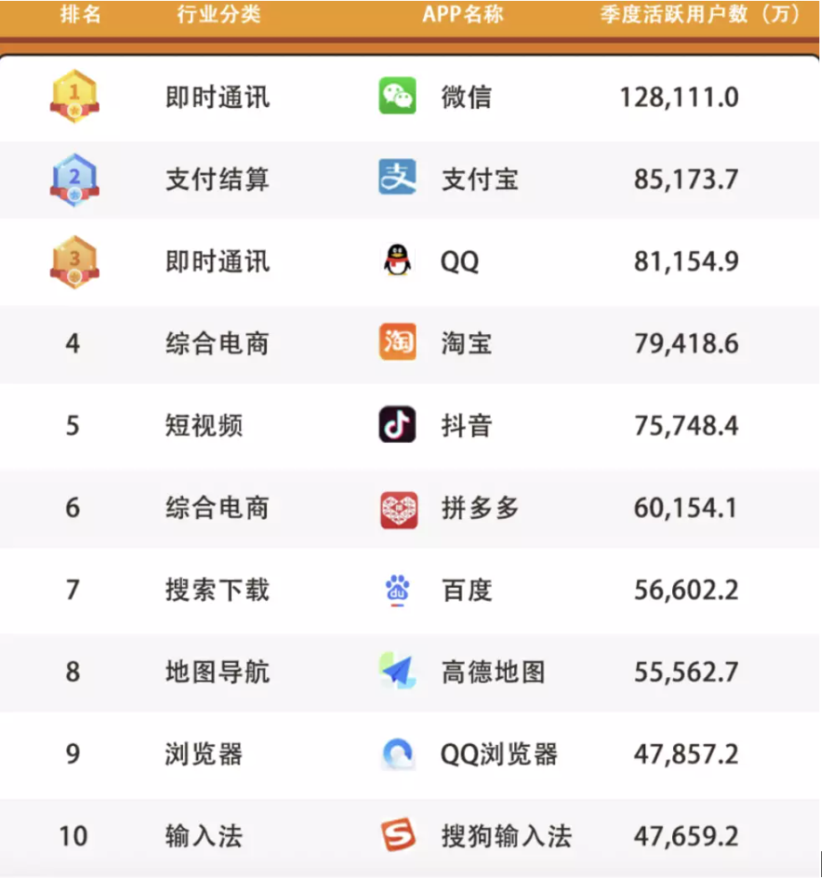 在CTR近日发布的《CTR-Xinghan · 2022Q1中国移动互联网实力榜》(以下简称“CTR星汉榜”)显示,基于APP季度活跃用户数排名的50个头部APP中,腾讯、百度、阿里、字节跳动四大公司旗下的应用占主要比例。拼多多、抖音、快手之后,很难再出现“平地起高楼”的故事。