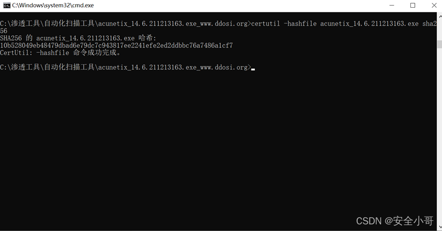 我们这次安装的是acunetix_14.6.211213163版本,可使用certutil进行sha256检测验证。