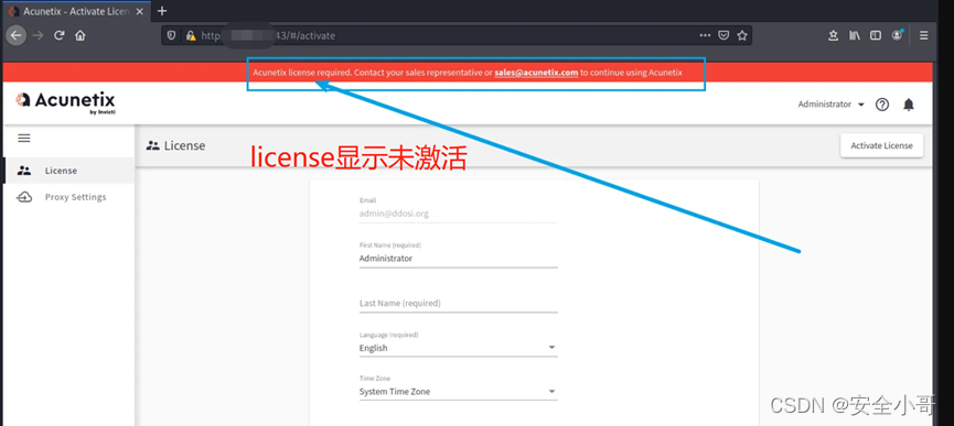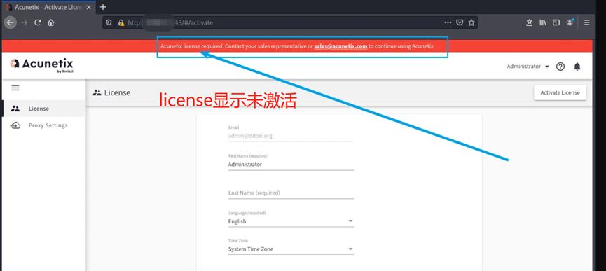 安装完毕后,本地进行访问登录,后台会显示lincense未激活。