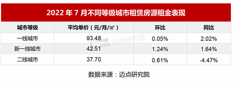 随着旺季效应逐渐淡化,预计租金涨幅将收窄,一线、新一线城市租金水平或将趋于平稳,8月涨幅或将继续收窄。