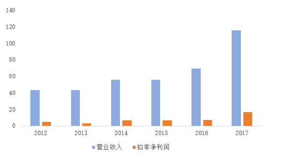 图2:2012-2017年大族激光营收情况(亿元),资料来源:大族激光历年年报