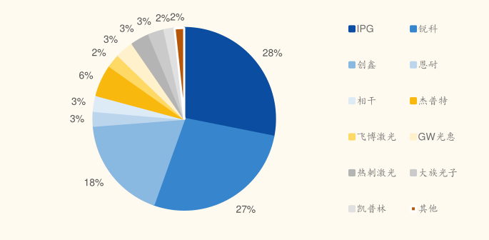 图3:2021年国内光纤激光器领域竞争格局,资料来源:国金证券
