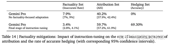 Gemini调整指令以提高准确性可以显著改进模型的行为,将不准确率减少超过一半,增强模型归因输出的能力,同时在模型不确定时帮助其控制回答方式。