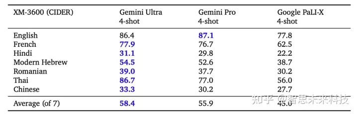 Gemini 在跨多种语言的多语言图像理解任务中也表现出色。