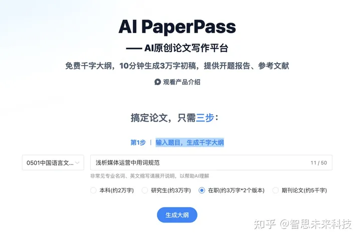 AI PaperPass免费千字大纲,10分钟生成3万字初稿,重复率低于5%AIPaperPass - AI论文写作指导平台AIPaperPass是AI原创论文写作平台,免费千字大纲,5分钟生成3万字初稿,提供答辩汇报ppt、开题报告、任务书等,40篇真实中英文知网参考文献,重复率超过10%包退费。AIPaperPass操作流程步骤:第一步、选择专业方向及拟定论文题目,第二步、AI智能生成论文大纲,第三步、下载论文文件。可选增值服务:开题报告、任务书和答辩汇报PPT。https://www.aipaperpass.com?pic=mLnw