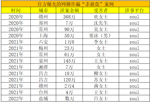 图:近年来爆出的Soul杀猪盘事件来源:网络