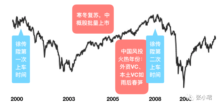 2005-2007年当波段向顶端挪去,外资纷纷在中国设立机构(如红杉中国、GGV、金沙江),本土基金也如雨后春笋(如高瓴、今日资本)。中国风投迎来火热年份。沈南鹏、张磊、徐新等知名GP都于此时上车。