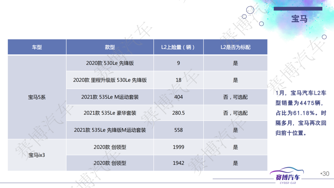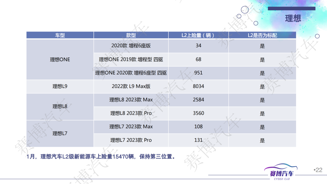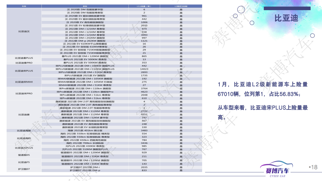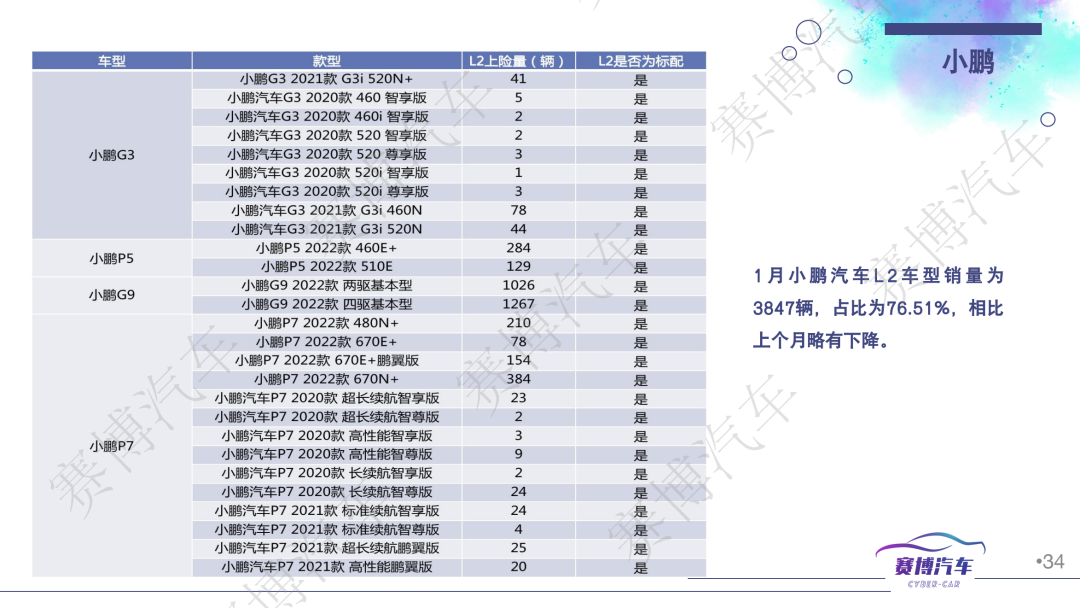- 2023年1月底至2月中下旬,共上市/新增搭载L2级智能驾驶功能的新能源车10款,全部都标配车联网和OTA功能;