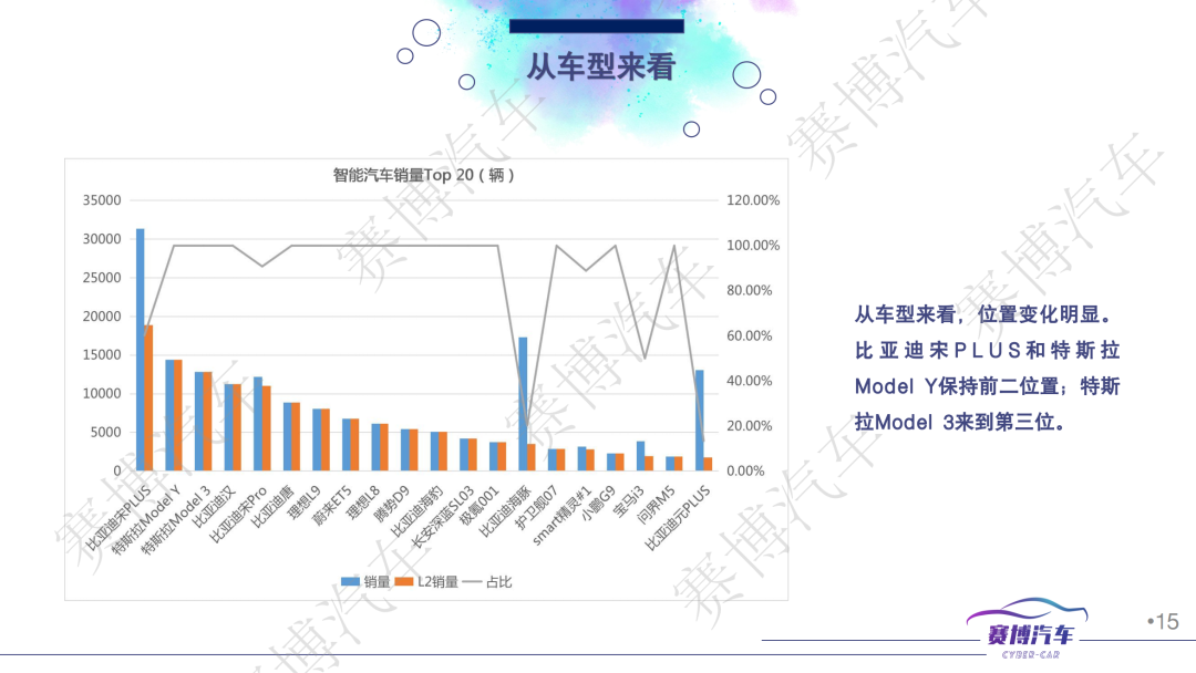 - 从全部车型来看,位置有些变化,比亚迪宋PLUS和特斯拉Model Y保持前二位置,特斯拉Model 3回归到第三位;