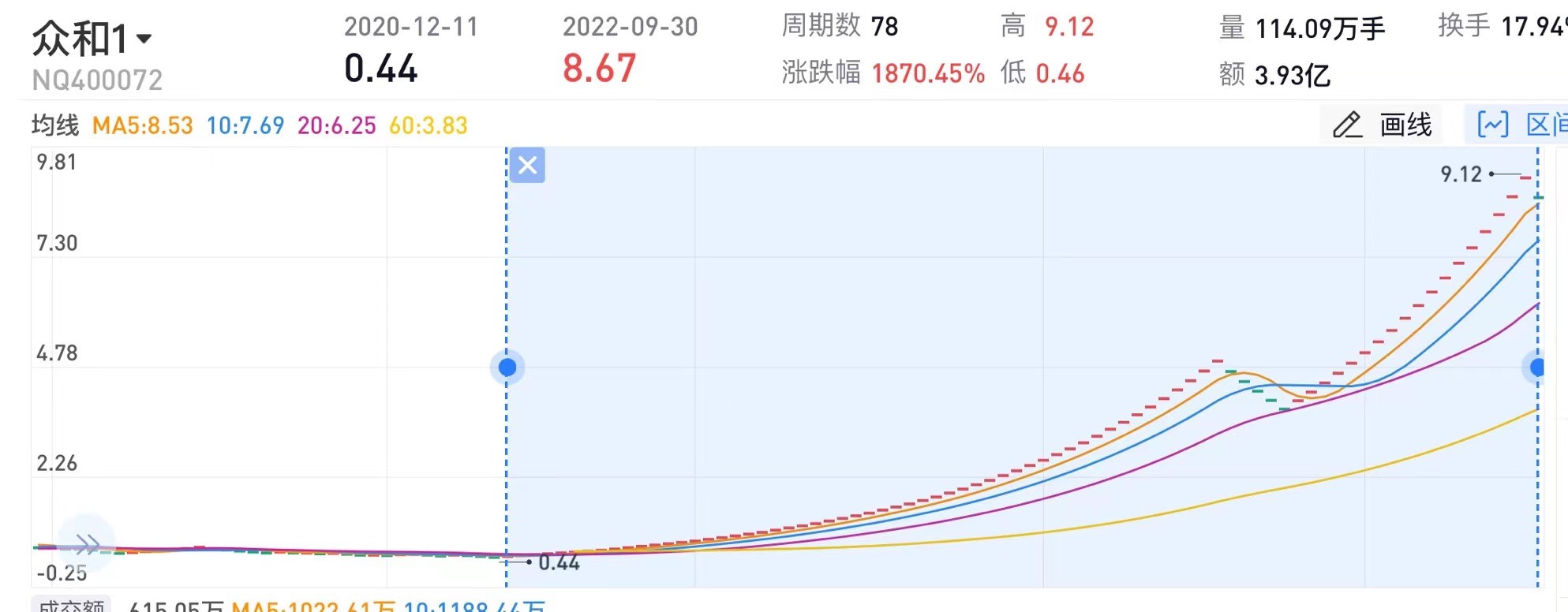 叠加重组预期与“疯狂”的锂价,众和1在今年7月停牌前的78个交易日累计斩获72个涨停板,累计涨幅超过1800%,被戏称为新能源“妖王”。