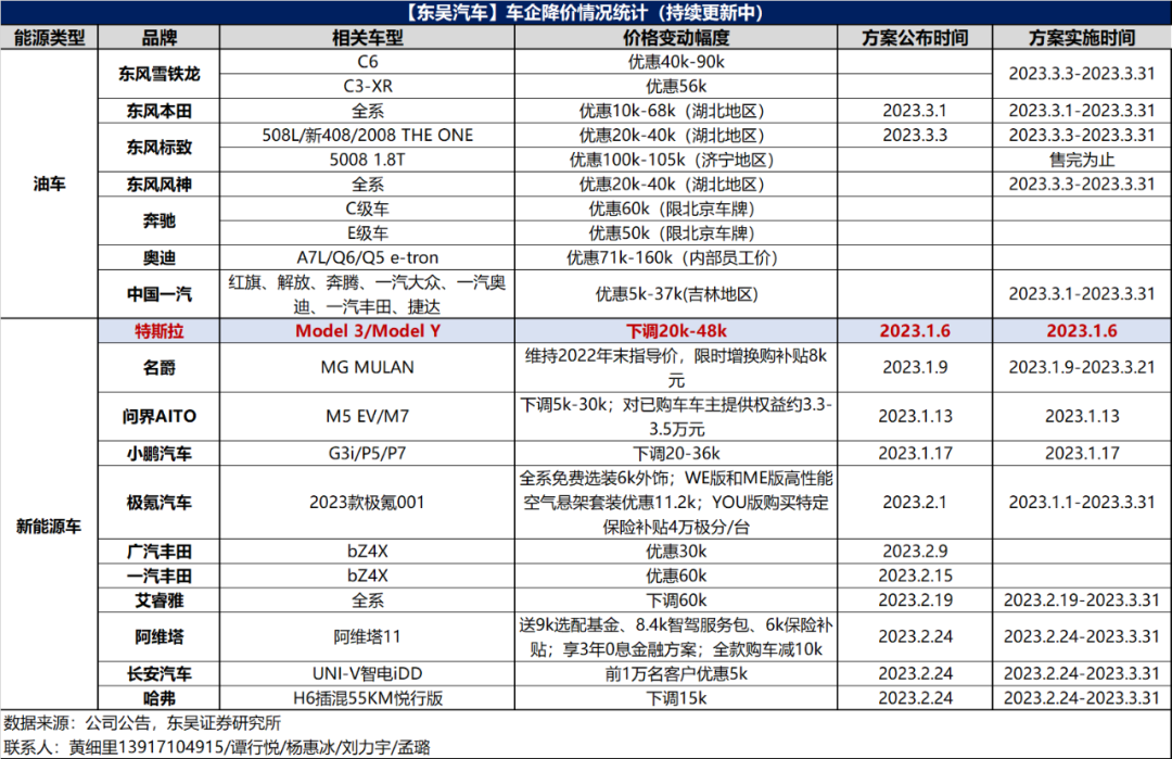 直接原因,是特斯拉和比亚迪两大巨头拉响了价格战的引线。今年年初,特斯拉大幅下调国产Model 3和Model Y的售价,创下特斯拉国产历史最低价,这帮助特斯拉快速回升了其销量表现。而后到2月,比亚迪直接“掀桌”,推出低至9.98万元的车型,这一价格直接打到传统燃油车的腹地。