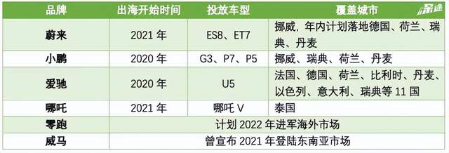 整体来看,过去2年时间,有头有脸的造车新势力,基本都已有出海动作。除了哪吒汽车外,其余大部分车企盯上了欧洲。