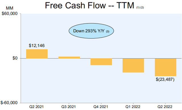 尽管如此,Q2现金流净流出增加,仍然可能带来一定压力。财报显示,截至二季度末,亚马逊的经营现金流同比下降40%至356亿美元;自由现金流净流出235亿美元,去年同期为净流入121亿美元。