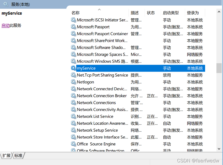 然后打开系统服务,就可以看到刚刚创建好的服务。