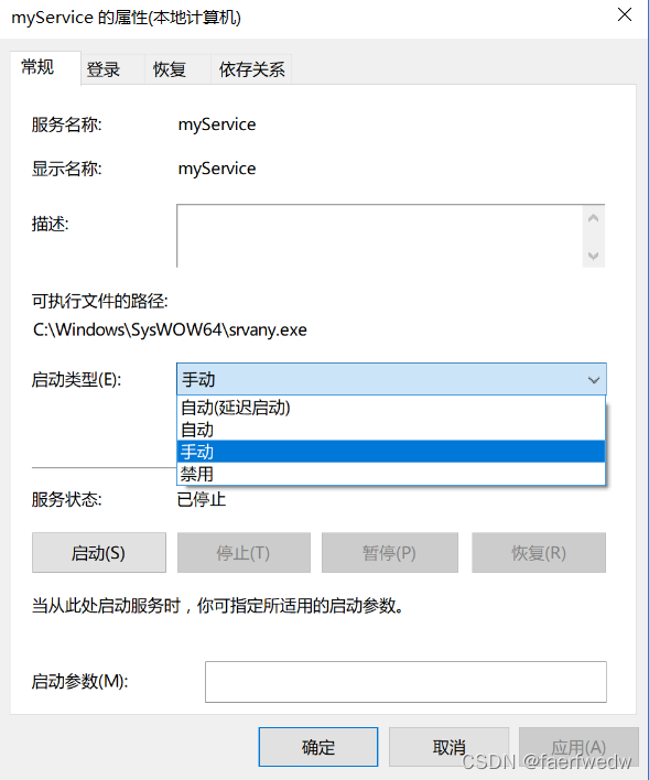 注意:删除服务命令为sc delete "创建的服务名称"
