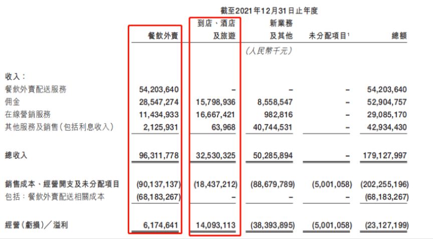 从美团去年的财报也可以看出,美团截止2021年12月31日止全年度营收1791亿元,其中外卖占比53.76%,贡献了963亿元的业务,而到店、酒店、旅游业务只有325亿元。全年光外卖和到店酒旅利润就拥有188亿元+。