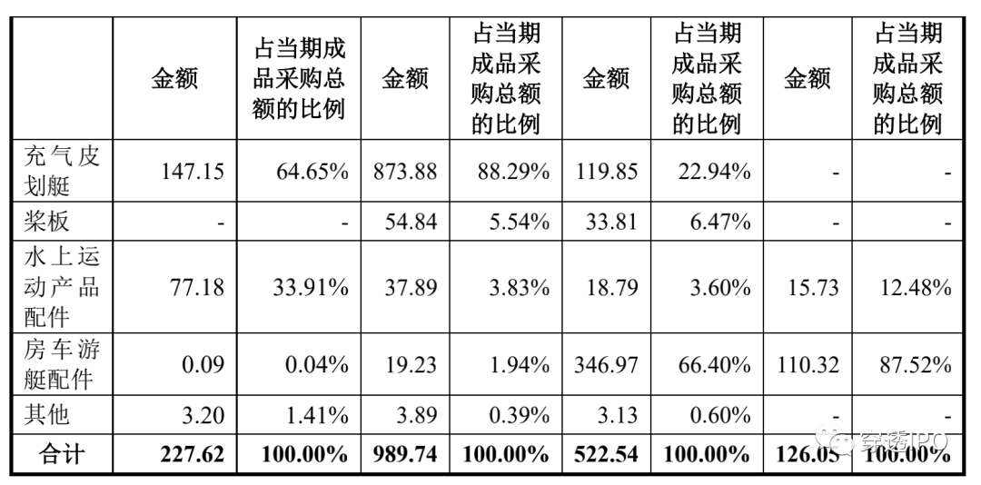 而且乐居财经《穿透IPO》注意到,渡远户外水上休闲运动产品存在直接购买成品对外销售的情形,包括皮划艇、桨板以及水上运动产品配件。