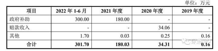 营收和利润均实现了规模增长,但增速有了明显放缓。今年上半年,渡远户外营业收入同比增长10.33%;营业成本同比增长16.45%;归母净利润基本持平,但扣非净利润下滑8.81%。主要为上半年,渡远户外靠政府补助、其他收益以及营业外收入补贴了利润。2019年-2022年6月,其营业外收入从0.16万元提升至301.7万元,翻了1885倍之多,其中包括300万元政府补助。