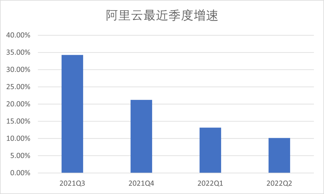 从营业收入来看,阿里云已经连续三个季度环比负增长,同比增速最近四个季度持续下探,分别为:34.28%,21.25%,13.19%,10.18%。