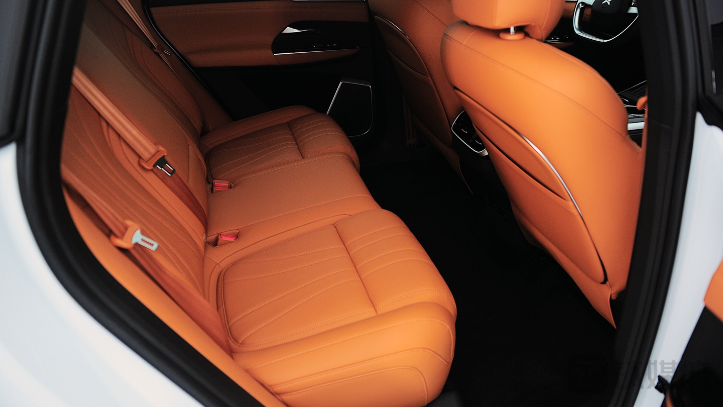 在后排座椅部分,小鹏G9后排坐垫厚度270mm,两侧长度500mm,大腿托行程50mm,两侧总长度500-550mm自由调整。家庭中沙发坐深⼀般是500~520mm,G9后排座椅的承托性与适用范围更好。